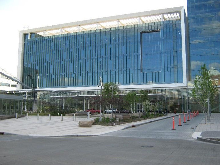The 6-story Outpatient Care Center serves as the clinic space for the campus, housing approximately 125 exam rooms and related functions. It acts as the “front door” of the adjacent hospital, for the arrival of inpatients, outpatients and visitors. Elevated walkways were constructed between the Outpatient Care Center, the parking garage and the Physicians' Office Building, facilitating travel between the buildings.